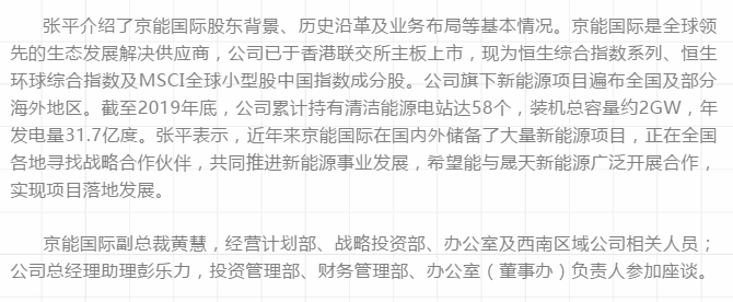 公司與京能國際開展合作交流座談